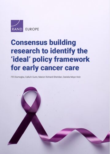 Consensus Building Research to Identify the ‘Ideal’ Policy Framework for Early Cancer Care, published by RAND Europe on behalf of Mission Early, presents the findings of a global Expert Consensus study involving cancer policy specialists from eleven countries across Europe, the Americas, Africa, Asia and Oceania. Using a rigorous three-phase methodology, including structured expert rating rounds and validation workshops, the research identifies the core building blocks of an effective, equitable and sustainable early cancer care system.