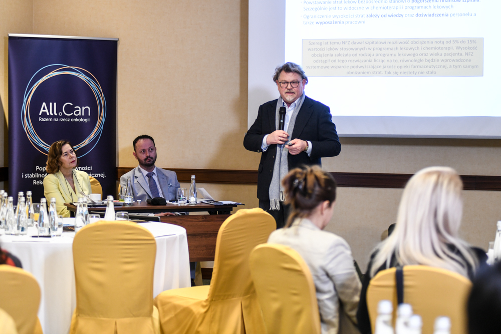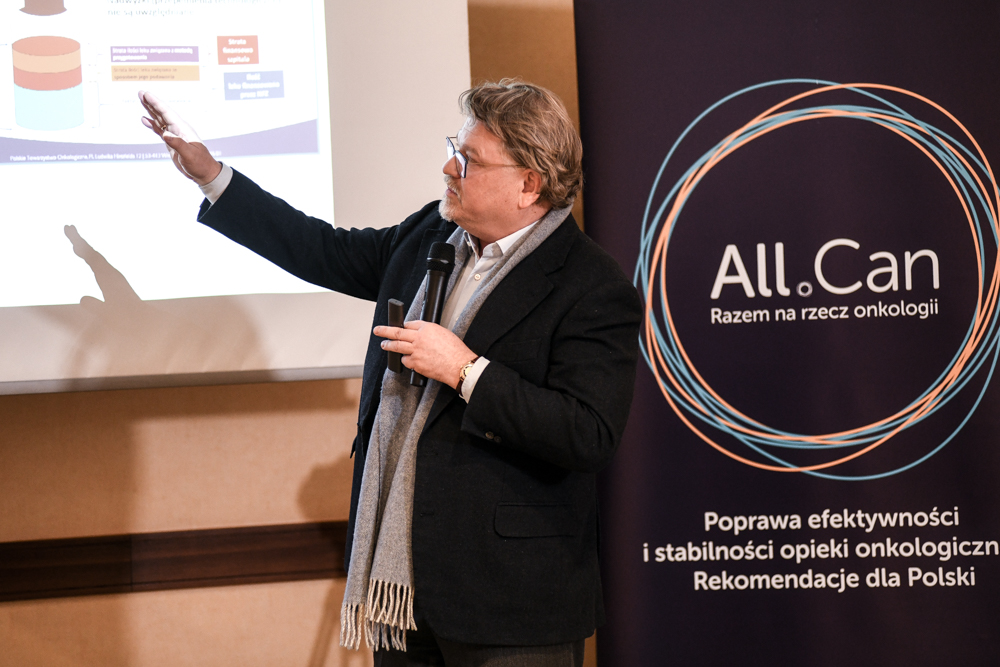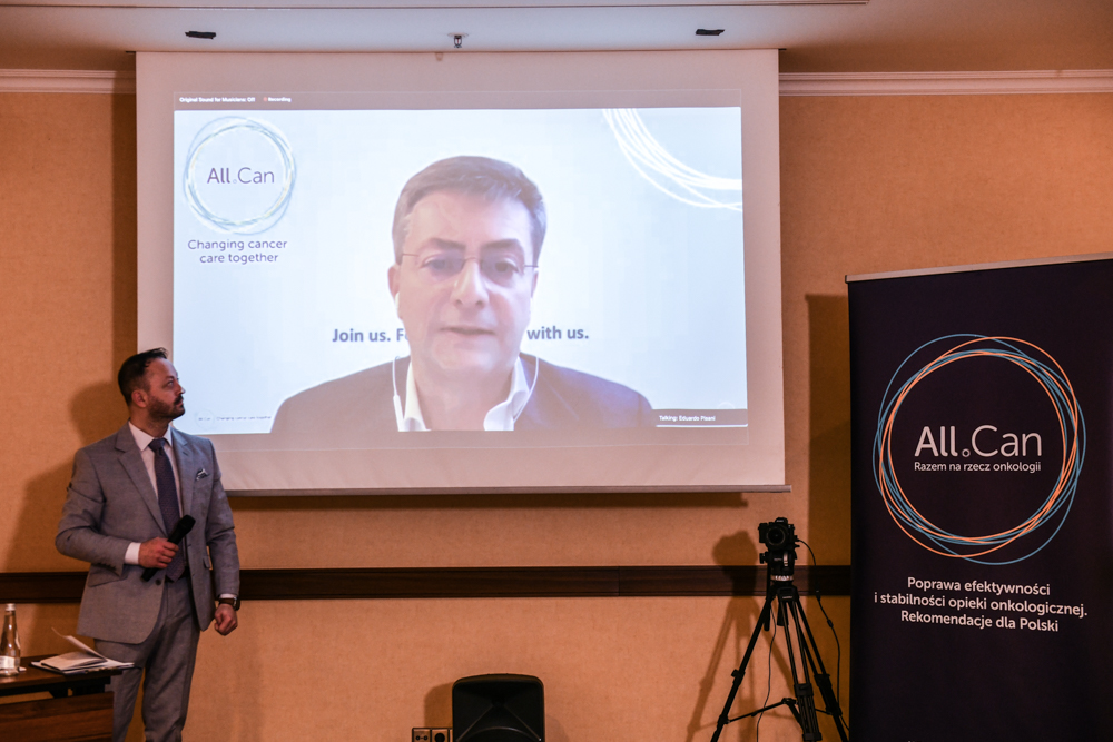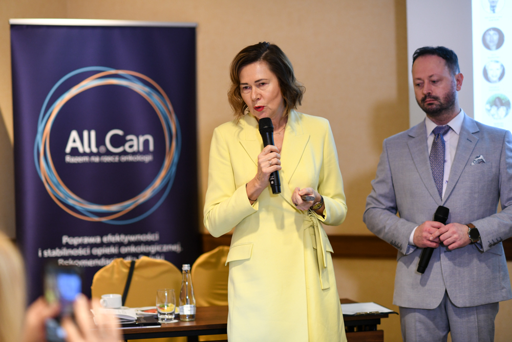 The meeting was chaired by Elżbieta Łapot representing Bristol Myers Squibb, a member of the Presidium of All.Can Poland and the Chairman of the Presidium Szymon Chrostowski. The speakers were Eduardo Pisani, General Director of All.Can International, Professor Maciej Krzakowski, National Consultant in the field of clinical oncology, Professor Piotr Rutkowski, President of the Polish Oncology Society, Professor Adam Maciejczyk, Chairman of the Oncology Council at the Minister of Health, and Jacek representing Amgen Graliński, member of the Presidium of All.Can Poland.