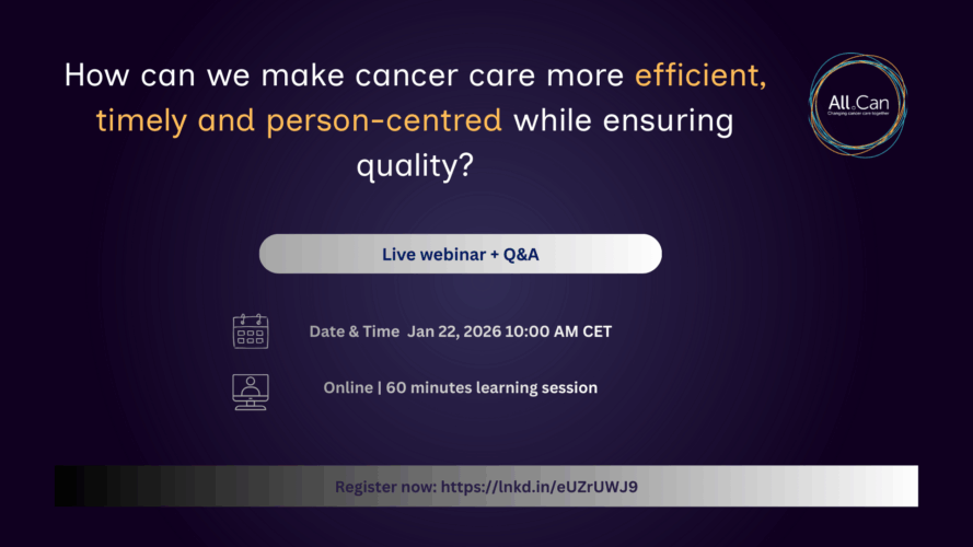 To unlock insights and inspiration from its Efficiency Hub, All.Can invites you to join an online learning session on 22 January 2026 from 10:00-11:00 CET: How can we make cancer care more efficient, timely and person-centred while ensuring quality?